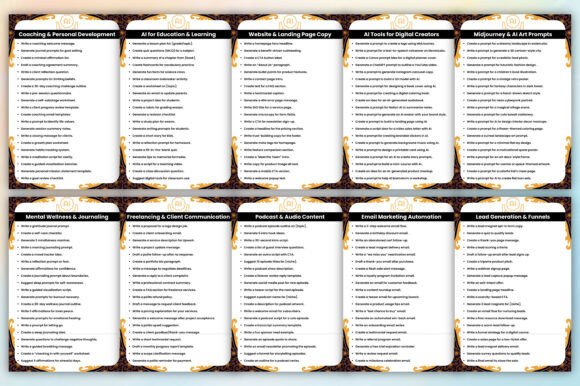 The 500+ Etsy Passive Income Prompts help sellers identify profitable niches, refine digital product ideas, and optimize listings with confidence. The Ultimate ChatGPT Prompt Library delivers 4000+ high-performance prompts that support content creation, marketing, automation, and business growth in one structured resource.